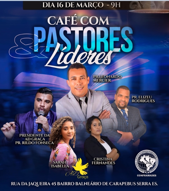 No dia 16 de março de 2024 a partir das 9h acontecerá um café para pastores e líderes em Balneário de Carapebus – Serra, no intuito de unir pastores e gerar comunhão entre os mesmos. O evento também é uma oportunidade para debater questões relevantes para a comunidade cristã.