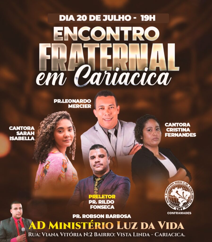 A CONFRAMADES – Convenção Fraternal de Ministros das igrejas Assembleia de Deus no Estado do Espirito Santo e Outros, realizará Encontro Fraternal de Obreiros, Líderes e membros na cidade de Cariacica – ES.